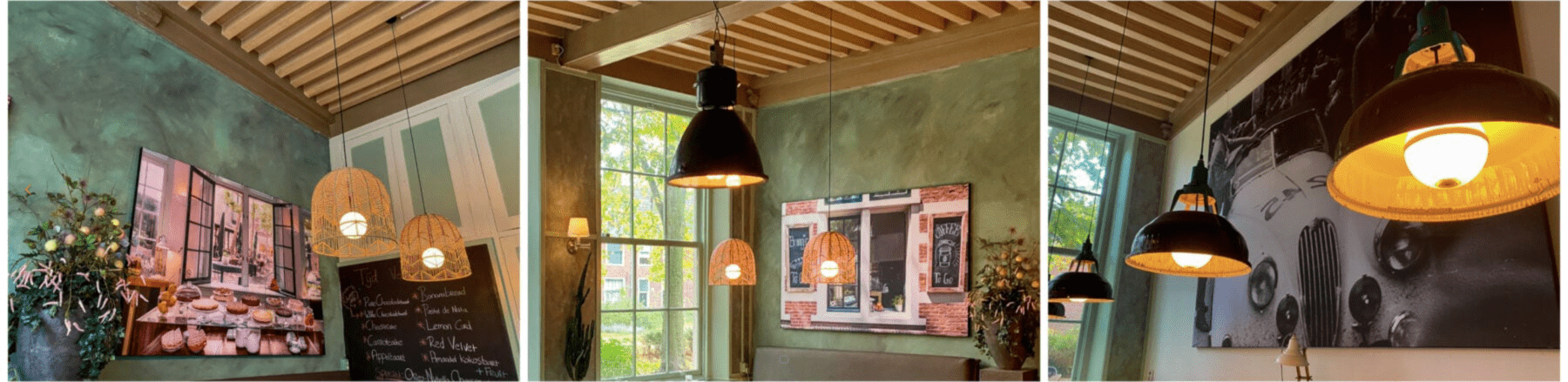 Literally translated: “Courtyard without worries” is a cozy and pleasant catering facility in the bustling center of Haarlem. Here you can drink delicious coffee, lunch or high tea without any worries. Hofje Zonder Zorg is located in a characteristic building on the Grote Houtstraat with a high ceiling and located on one of the most beautiful courtyards in Haarlem. The back room was very dark because of the tall trees in the courtyard. That is why DYDELL was approached to help think about catering lighting.